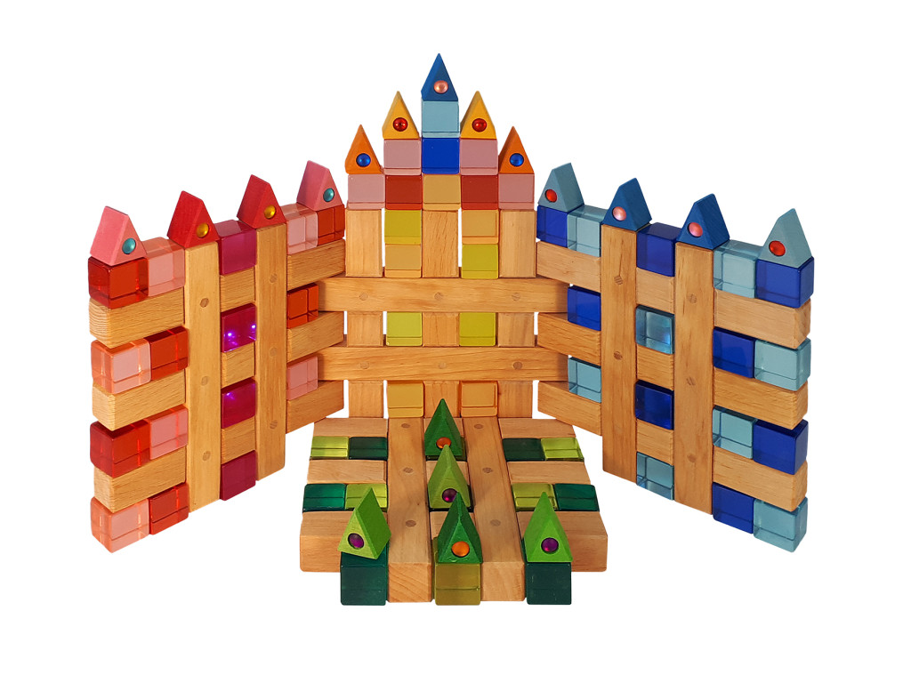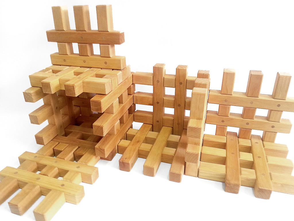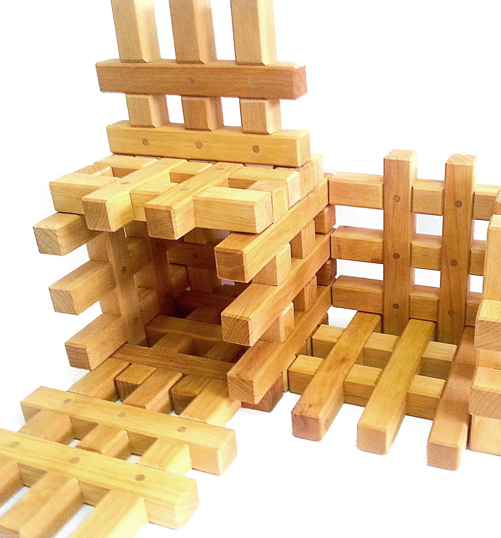 A rácsblokkok hosszanti és keresztirányú részei egymásba vannak ragasztva. A blokkok számtalan variációban összekapcsolhatók, így házakat, kastélyokat és palotákat építhetünk.