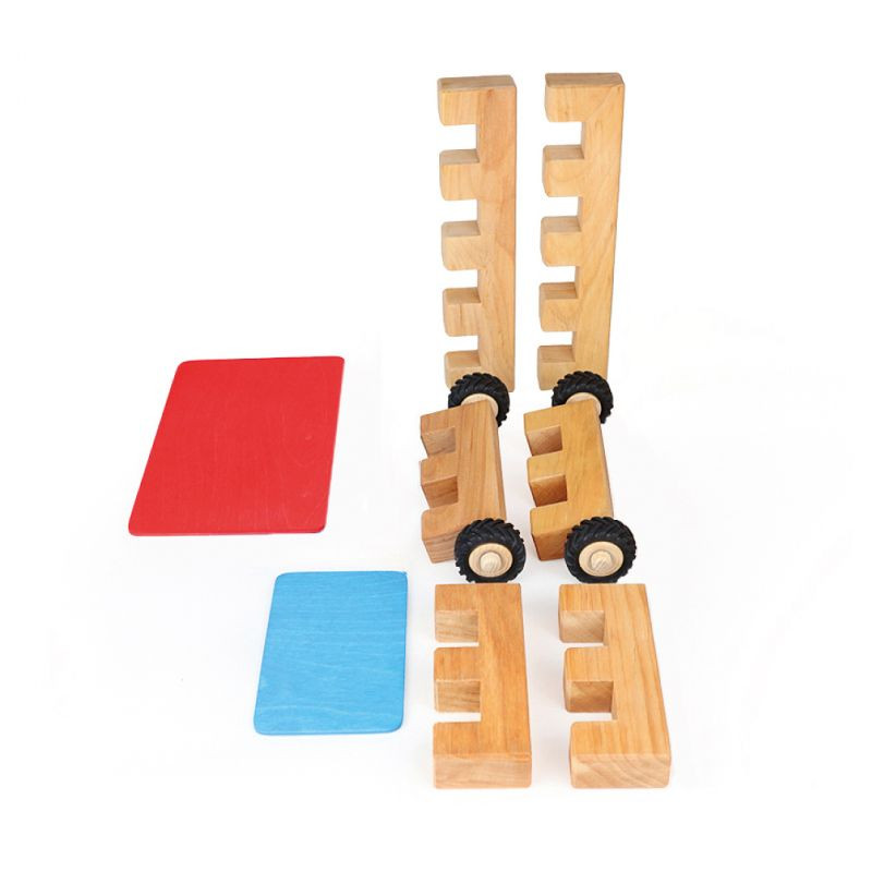 Ez a készlet 1 jármű elkészítésére alkalmas. A piros és kék táblák segítségével számtalan tömb egymásra rakható, hogy végtelen számú egyedi járművet építsenek. A kiváló minőségű kerekek csendes és sima haladást biztosítanak, így a játék egyszerre szórakoztató és halk. Ez a készlet tökéletes egyetlen egyedi és kreatív jármű felépítéséhez, színes járműlemezeket tartalmaz, amelyek támasztó- vagy ülőfelületekké alakulnak át az ötletes kialakítás érdekében. Kombinálhatja más Bauspiel elemekkel: például X építőelemekkel, fénykockákkal vagy fényhasábbal.