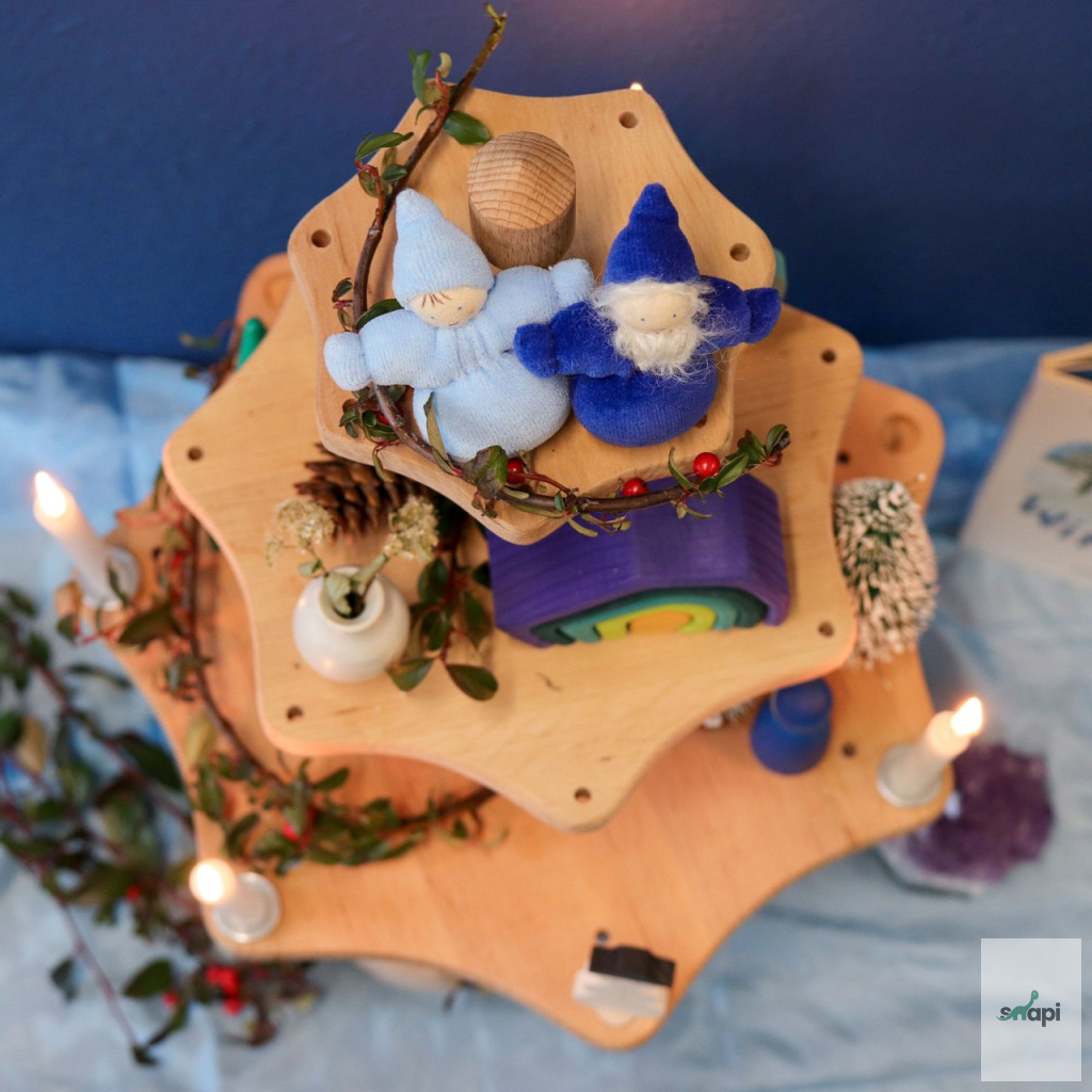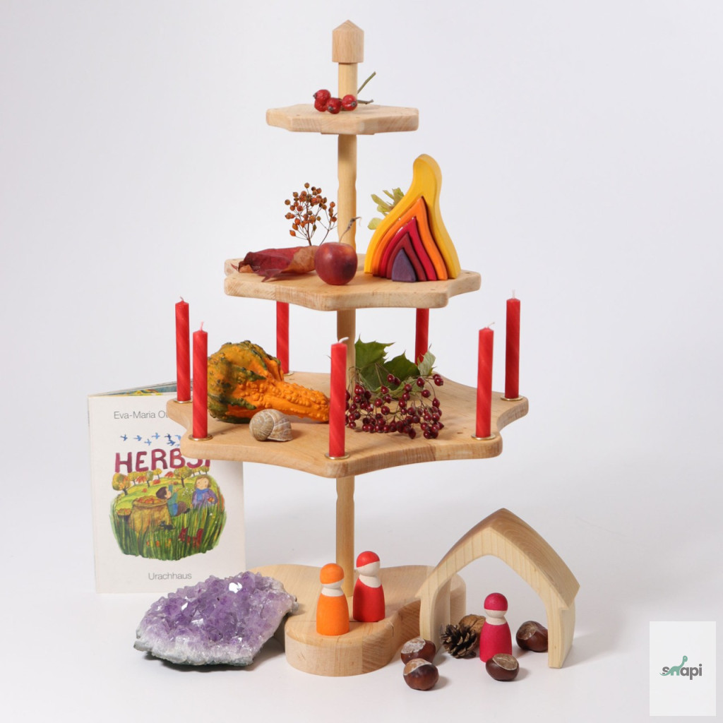 Ez az emeletes állvány tökéletes fa figurákkal virágokkal, gyümölcsökkel, babákkal stb. díszítéshez karácsonyra, húsvétra vagy születésnapi partikra. Karl-Heinz Flau által tervezett szezonális állvány. A három szint magasságban állítható. A legalsó szinten hét lyuk található gyertyáknak. Az alján egy nyílás található képeslapnak. A rúd teteje résekkel ellátott, így az állvány adventi koszorúként is használható.
