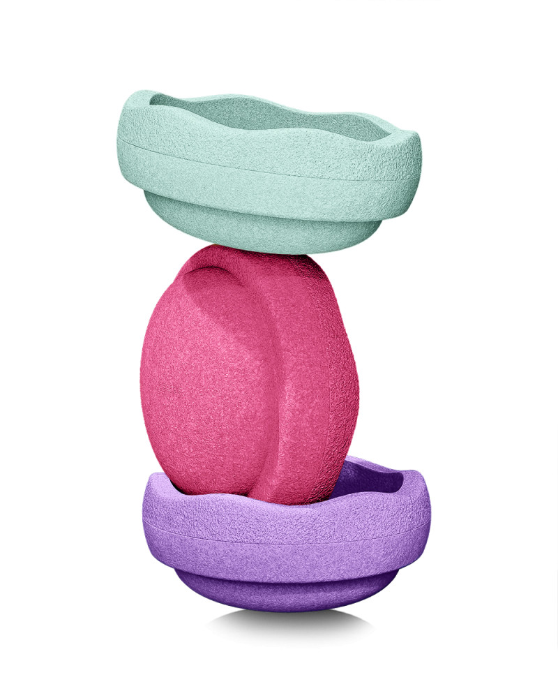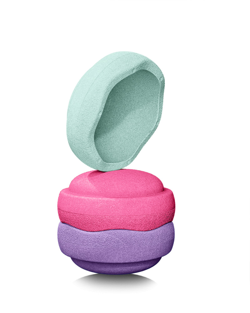 A szett tartalma: 3 db egymásra rakható Original elem rózsaszín, lila és menta színekben