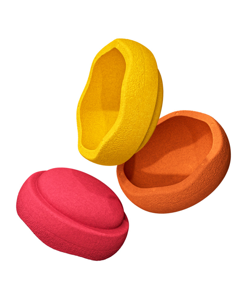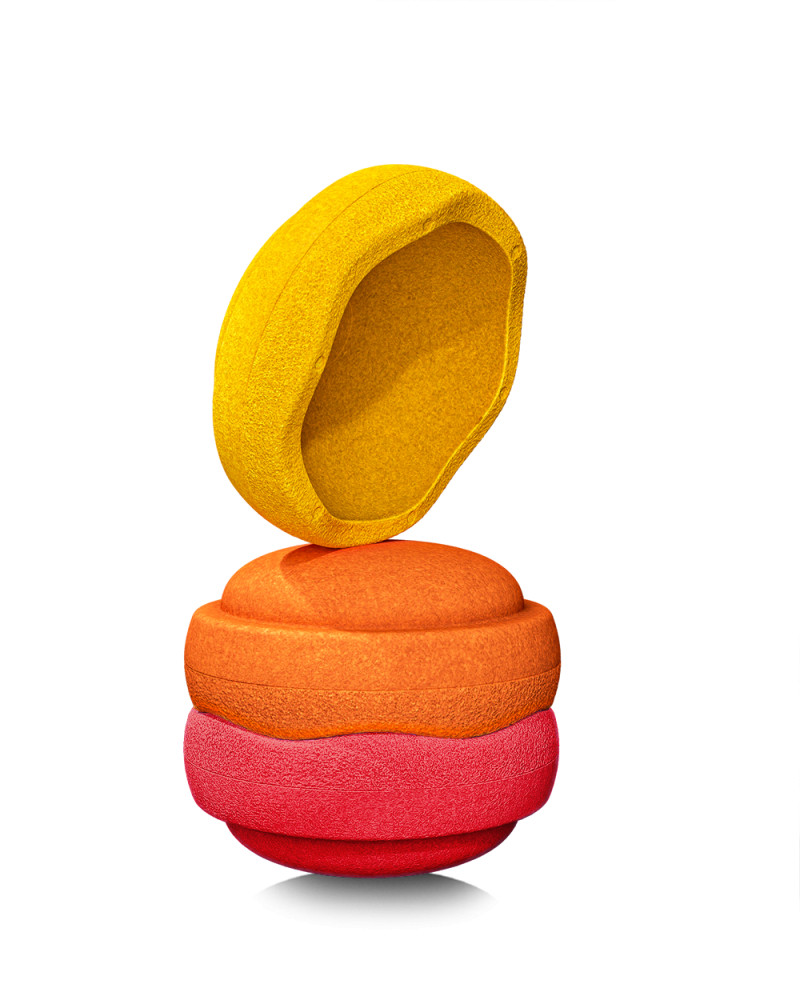 A szett tartalma: 3 db egymásra rakható Original elem piros, citromsárga és narancssárga színekben