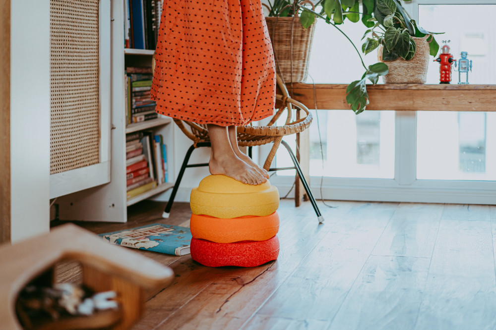 -Ha a Stapelstein® termékeket egyensúlyi játékokhoz és akadálypályákhoz szeretné használni, akkor a legjobb, ha ezt sík, csúszásmentes felületen teszi.