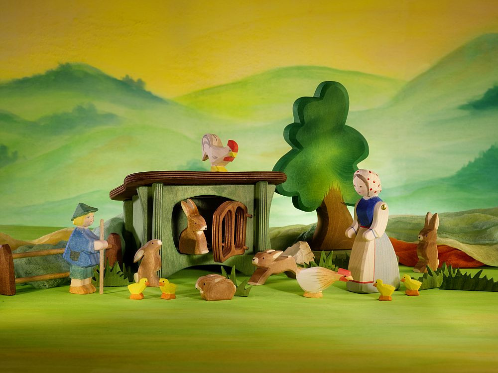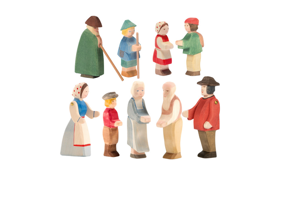 " Én vagyok az Ostheimer juhászfiú kék kabáttal. Bármilyen az időjárás, elviszem az állatokat legelni a meredek hegyoldalakra. A zöld filckalapom mindig megvéd, akár a tűző napsütéstől, akár a zuhogó esőtől. Néha Heidi elkísér a kirándulásaimra. Ő egy nagyszerű lány, és sok kalandot élünk át együtt."