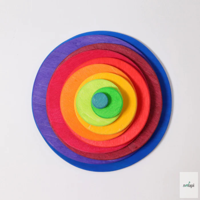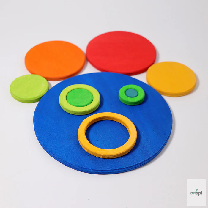 Tíz különböző méretű és színű kör és tíz gyűrű várja a játékos építést és játékot. A kísérletezés szeretetével és biztos ösztönnel egyensúlyozó játékok, légies épületek és multifunkcionális platformok hozhatók létre.