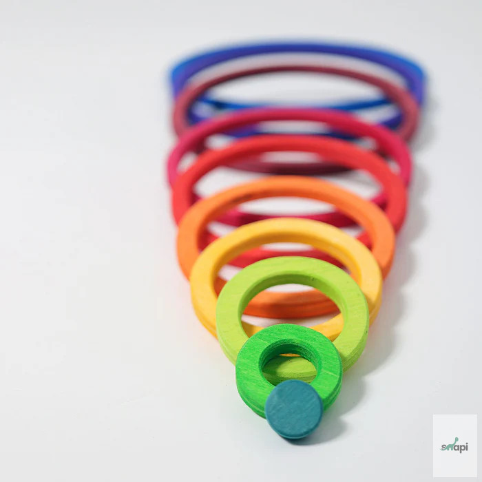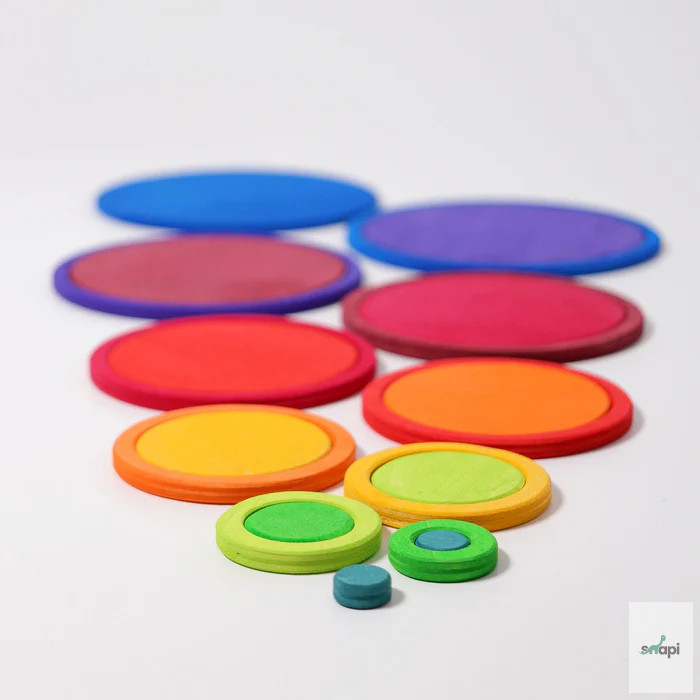 10-10 fából készült gyűrűk és körök, szivárványszínű