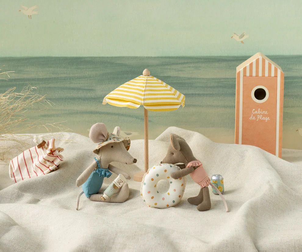 Itt a nyaralás ideje. Bevonatos anyagból készült úszó az autentikus megjelenésért. Nem vízálló, ezért csak száraz talajon játsszon. Csak a képzeletedben úszik a vízen. Ez a készlet baba méretű egerek és kistestvérek számára alkalmas.