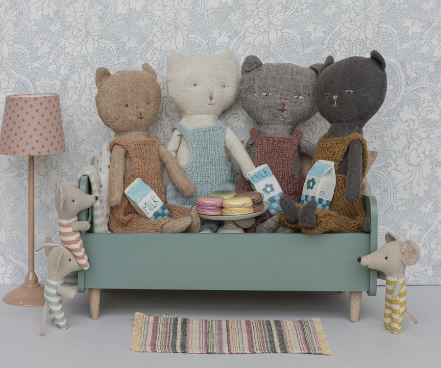 A ragyogó fények, harangok és sípok nyüzsgő világában, ahol folyamatosan új történetek nyűgöznek le bennünket, a Maileg egy olyan világ, amelyben a gyufásdobozok egérágyak lehetnek; a hercegnők tökéletes teázótársak; és kalandokat találhatunk egy barátságos erdei sétán. Ez egy olyan világ, ahol a macskák és az egerek barátok.