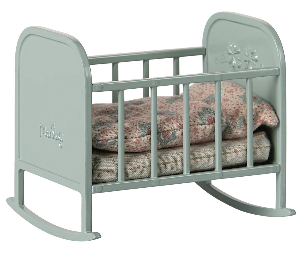 Gyönyörűen kialakított fém bölcső puha hálózsákkal és matraccal benne. A bölcső fejtámláján egy kis virág domborítás és lekerekített lábak találhatók, így álomba ringathatod a kicsiket. Egereknek és My nyusziknak is tökéletes méret.