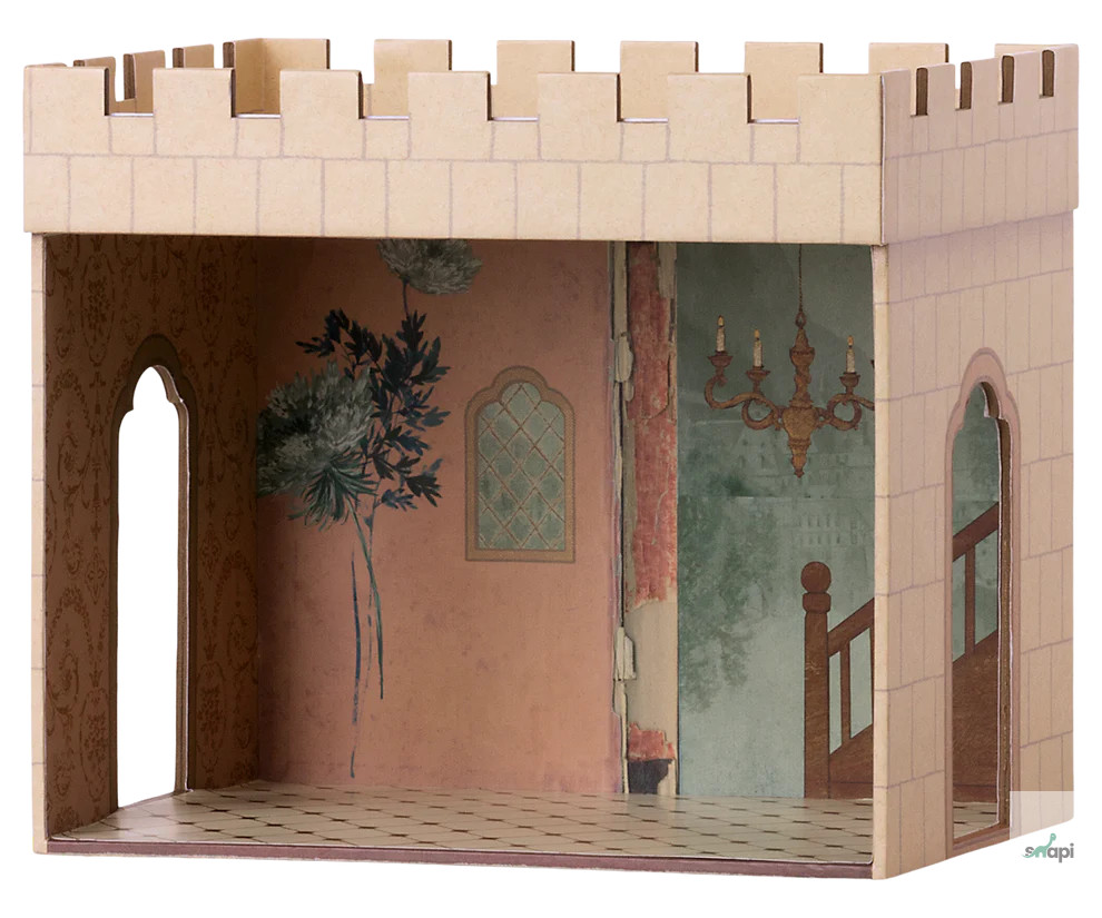 Ez a kastély gyönyörű otthon minden egérnek. Kartonból készült, egyedi Maileg mintákkal borítva. Használd kis otthonként egereid számára.