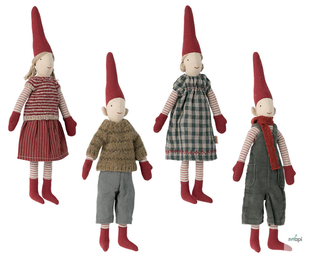 Mini pixies - 4 különböző stílusból álló gyűjtemény, mindegyik exkluzív anyagokból készült gyönyörű karácsonyi ruhákba öltözve. Bármilyen karácsonyi dekorációhoz imádnivalóak, és méretben és kollekcióban keverhetők.