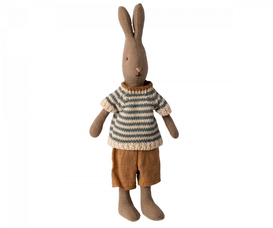 Az 1-es méretű nyuszi belefér a Maileg babaházba és minden Mini és Miniture méretű bútorba.