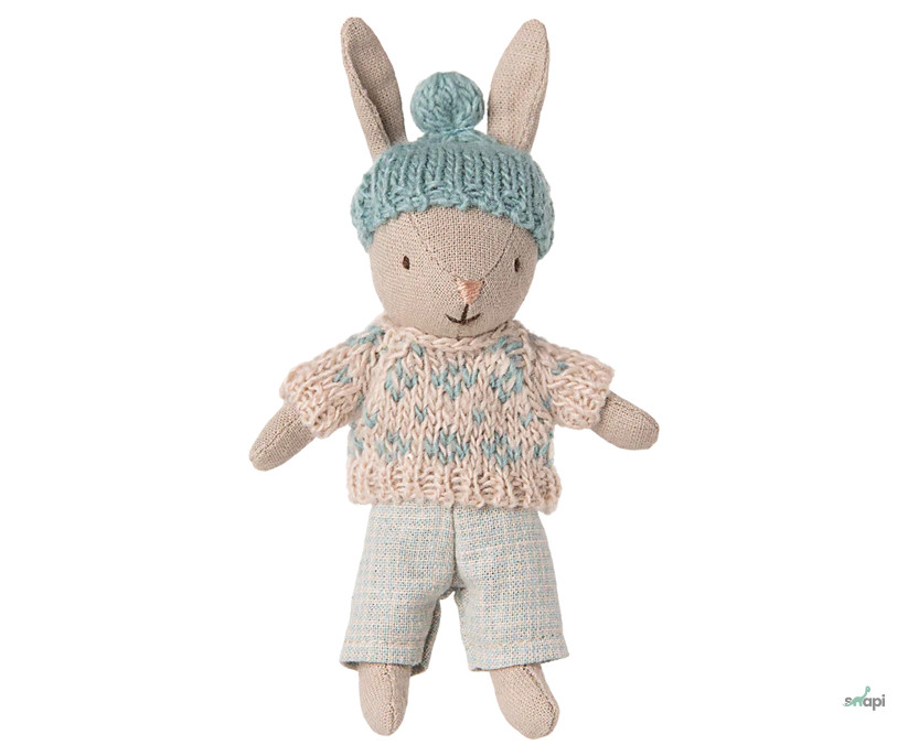 Kezdődjön a mesélés és az órákig tartó játék ezzel a puha nyuszival. Tökéletesen illik a Maileg mikro méretű kiegészítőihez, és elfér a miniatűr babaházban. Ez a nyuszi méret útközben is tökéletes, így a varázslatot mindenhová magaddal viheted.