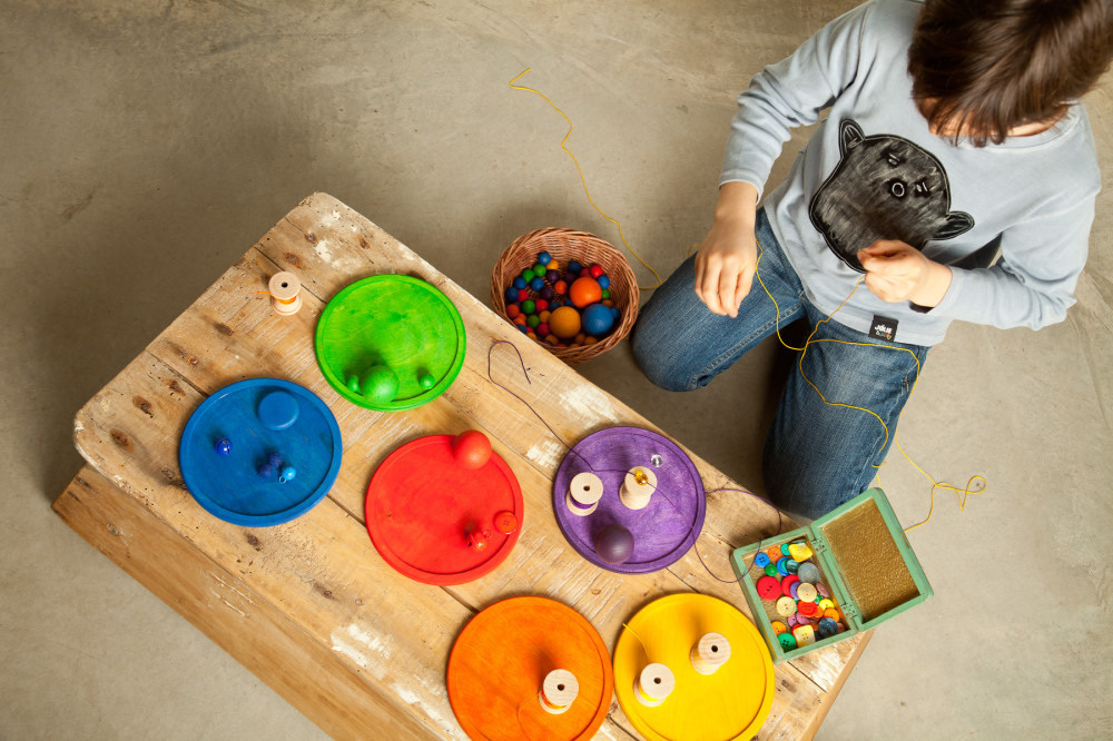 egyes darabok elveszíthetik a színüket, amikor nyállal érintkeznek, de ez teljesen rendben van, mivel minden szín 100%-ban biztonságos és nem mérgező. Az elemek befejezése növényi eredetű viaszokkal és olajokkal történik. Az olajok eleinte erős aromájúak lehetnek, de idővel megpuhulnak. Csomagolásuk teljesen műanyagmentes.