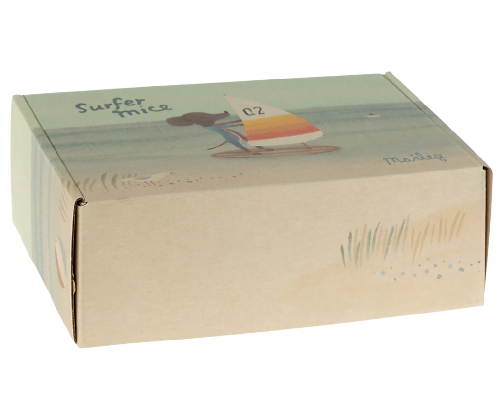 Vakáció, nyaralás ideje... Ez az egér készen áll egy tengerparti napra. Szörruhában van és hozza a szörfdeszkáját, a szörfös megjelenés teljessé tétele érdekében pedig napernyősapkáját viseli – készen áll a hullámlovaglásra!