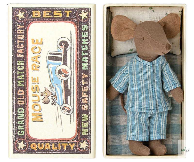 MAILEG NAGYTESTVÉR EGÉRFIÚ GYUFÁSDOBOZBAN, MÁGNESES MANCSOKKAL, VILÁGOSBARNA