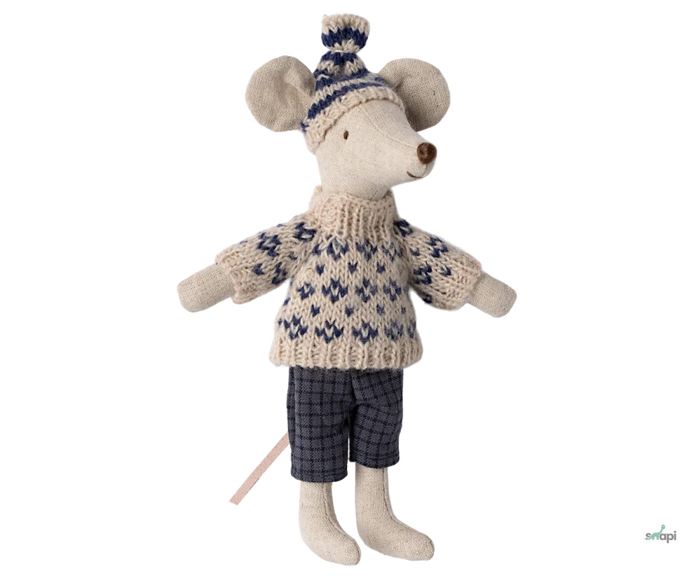 Egy egér, aki órákon át tartó szórakozásra készen áll a lejtőkön a hideg téli időszakban. Minden játékkészlet tartalmaz egy melegen felöltözött egeret, sílécet és síbotokat. Nézd meg ezt az apró kötött sapkát, amely melegen tartja a füleket.