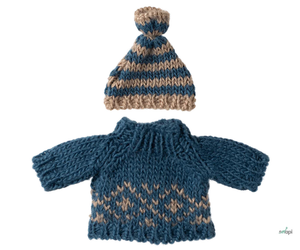 MAILEG RUHA APA EGÉR - KÖTÖTT PULÓVER ÉS SAPKA