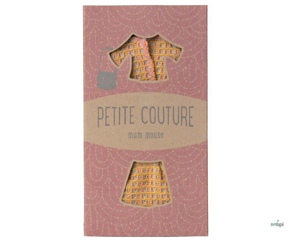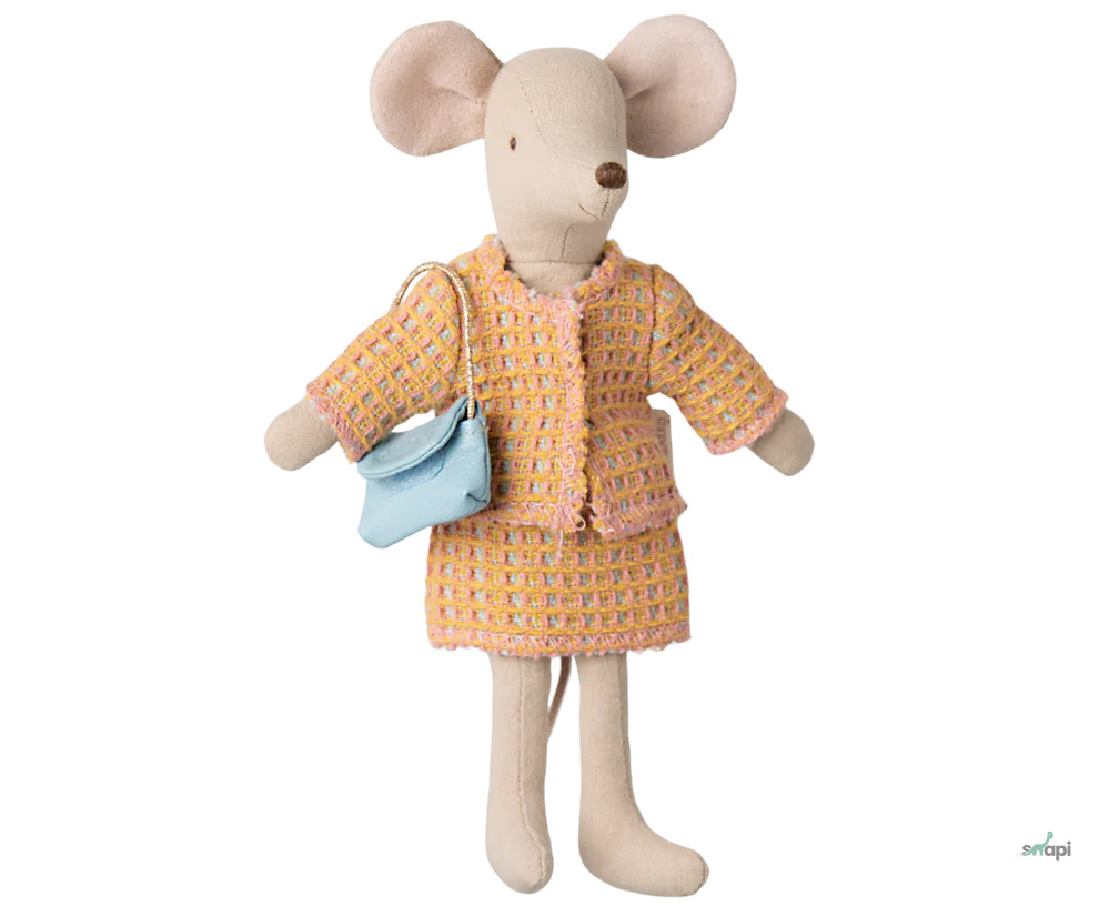 Ha új ruhákra van szükséged az egerednek, ez a szett jó választás lesz. A kosztüm egy rövid kabátból és szoknyából áll. A dobozban egy igazi női táskát is találsz.