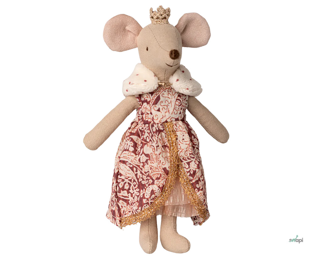 A királynő egér Anya méretben készen áll, hogy háziasszony legyen a kastélyában. Gyönyörű királyi ruhát és koronát visel, és tökéletesen illik a kastély termébe.