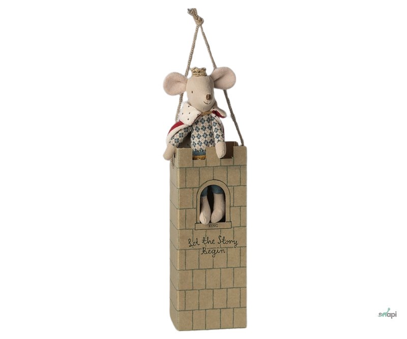 Az Apa méretű Királyegér készen áll, hogy házigazda legyen a kastélyában. Köpenyt és koronát visel, és tökéletesen illik a várcsarnokba.