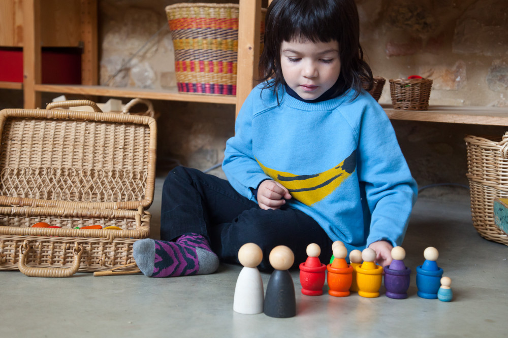 egyes darabok elveszíthetik a színüket, amikor nyállal érintkeznek, de ez teljesen rendben van, mivel minden szín 100%-ban biztonságos és nem mérgező. Az elemek befejezése növényi eredetű viaszokkal és olajokkal történik. Az olajok eleinte erős aromájúak lehetnek, de idővel megpuhulnak. Csomagolásuk teljesen műanyagmentes.