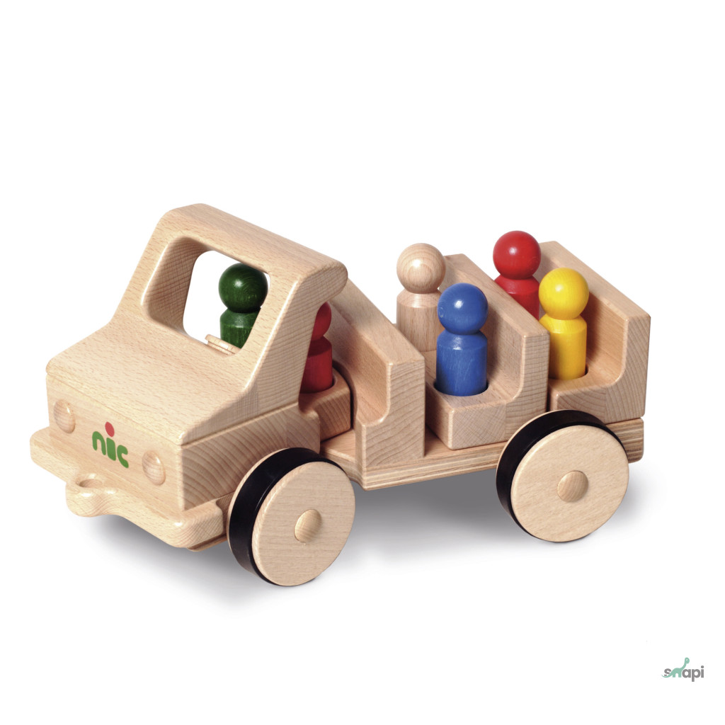 „Rodinný výlet“ – creamobil „základný model, krátky“ drevené vozidlo, s 2 odnímateľnými lavičkami a 6 peknými drevenými figúrkami.
