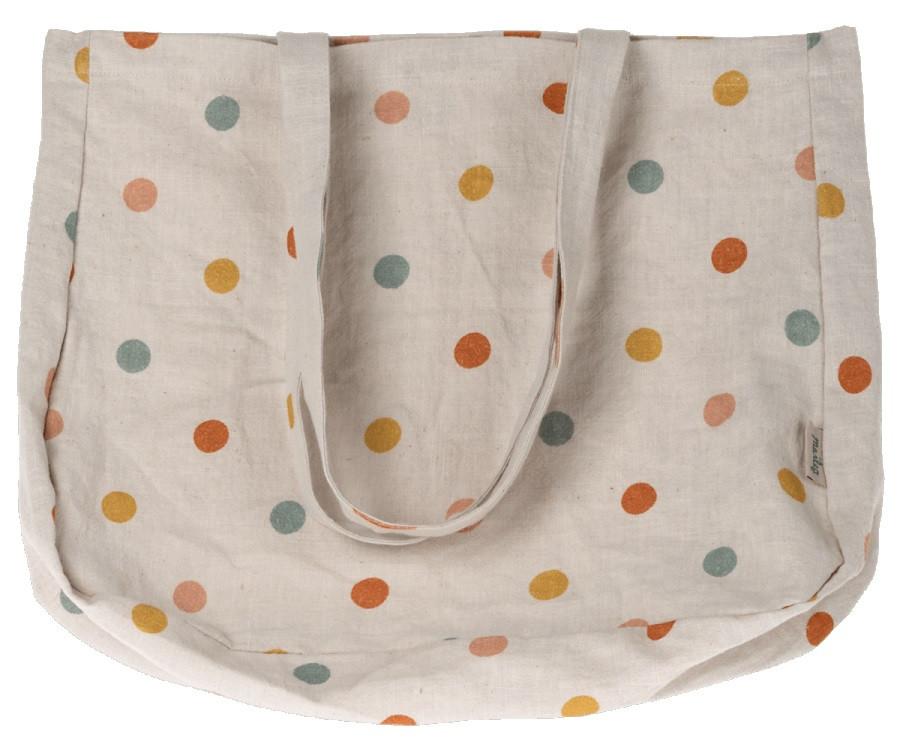Gyönyörű pöttyös nyomott táska a legpuhább rami/pamut anyagból. Tökéletes minden cuccodhoz, amikor útközben van.