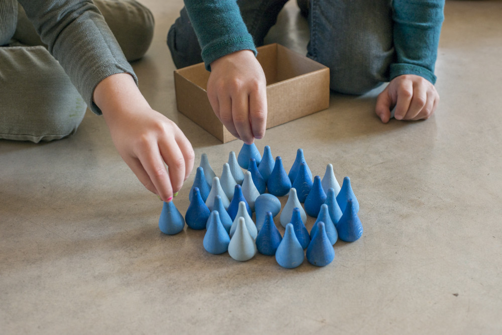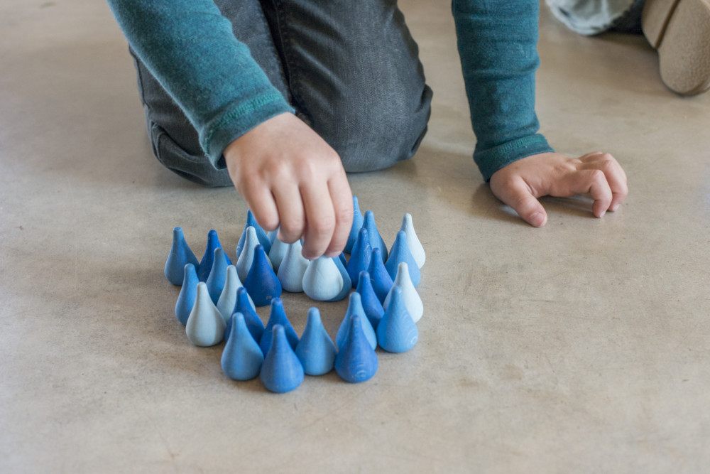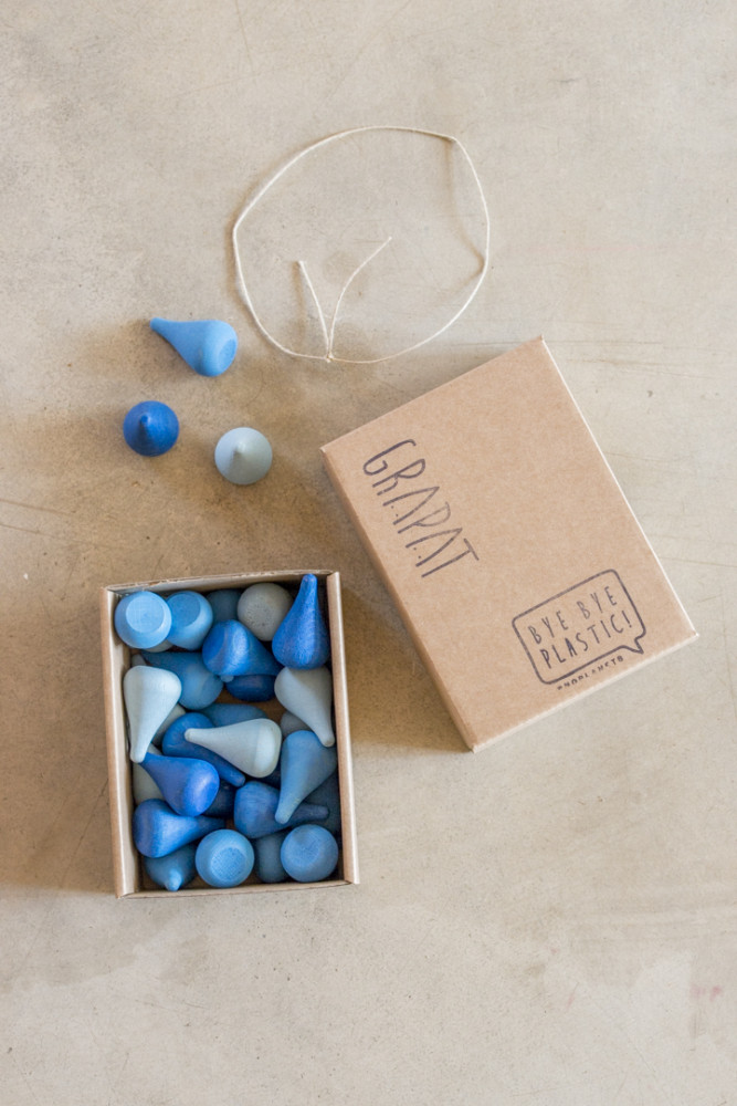 A szett tartalma: 36 darab esőcsepp alakú fajáték három különböző árnyalatban