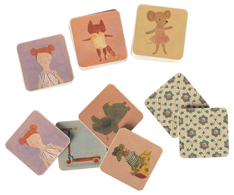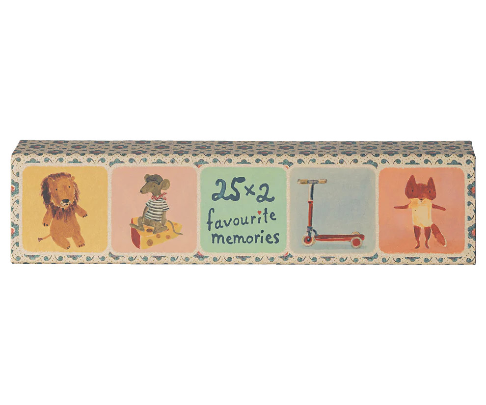 Klasszikus memóriajáték 25 különböző illusztrációval, amelyet Dorthe Mailil rajzolt. Az ihletet az évek során előállított különféle tárgyakból merítik. A játék 50 kártyát (25 párt) tartalmaz.