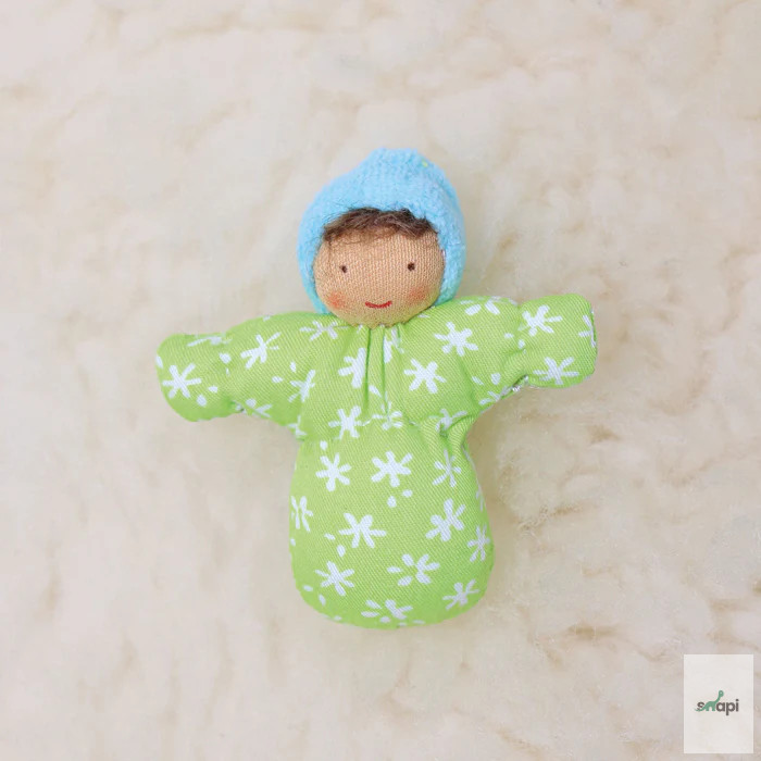 Babáikat Európában készítik hagyományos kézműves módszerrel. A nagyon szerető arcokat is kézzel festik, így minden babának egyedi kifejezése van. A baba magassága: 7 cm