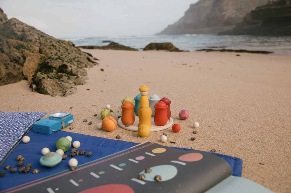 egyes darabok elveszíthetik a színüket, amikor nyállal érintkeznek, de ez teljesen rendben van, mivel minden szín 100%-ban biztonságos és nem mérgező. Az elemek befejezése növényi eredetű viaszokkal és olajokkal történik. Az olajok eleinte erős aromájúak lehetnek, de idővel megpuhulnak. Csomagolásuk teljesen műanyagmentes.