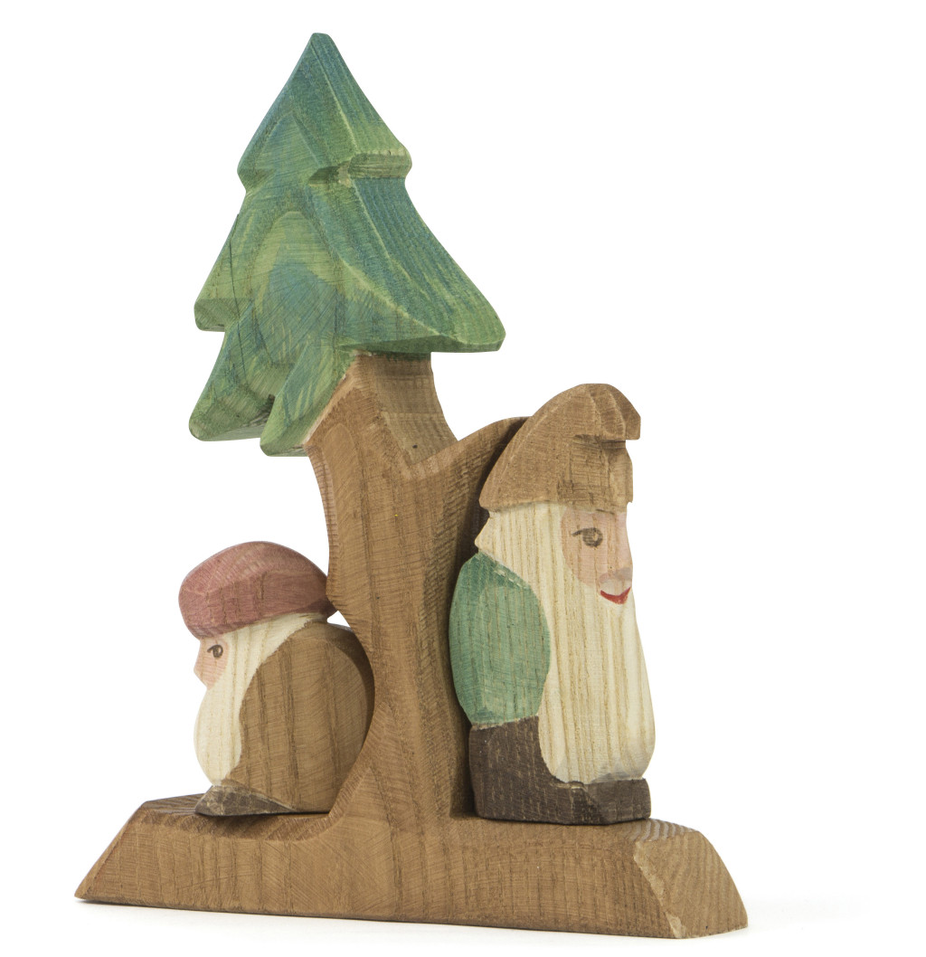Fa fenyő 2 darab törpe figurával