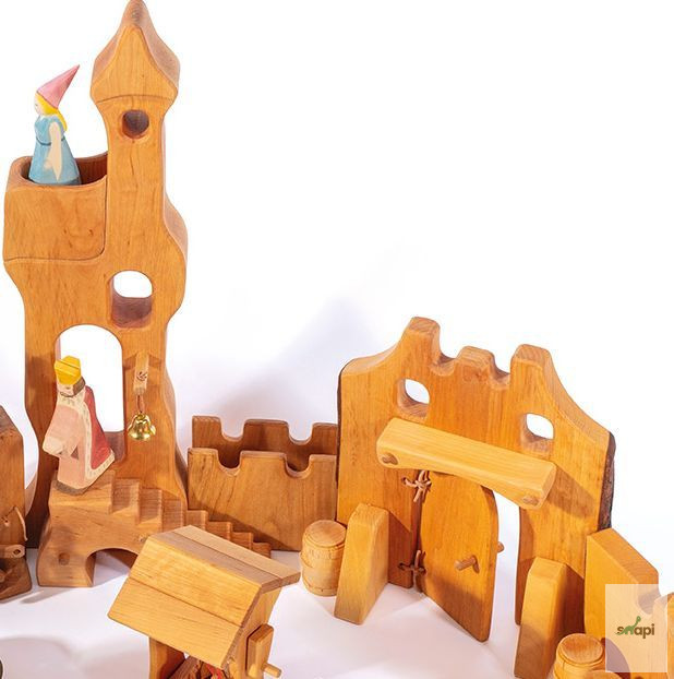 65 cm magas torony lépcsővel és haranggal varázslatosan szép égerfából készült mesevárunkhoz. Kiváló minőségű fajátékok, amelyek erősítik a gyerekek képzelőerejét.