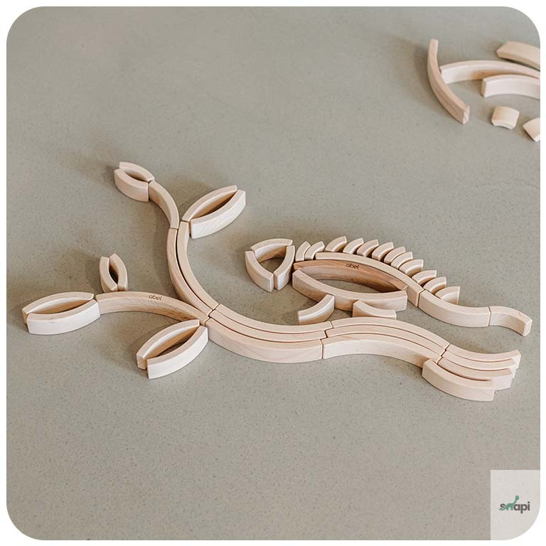 A kockák egyedi formája és lenyűgöző mérete biztosítja, hogy minden, amit az Abel kockákkal építesz, azonnal gyönyörűnek tűnjön. Minden egyes kockát szeretettel, kézzel készítenek egy darab bükkfából. Az Anyatermészet gyönyörű mintákkal díszítette őket. Az Abel kockák nagyszerűen használhatók a finommotoros készségek, a koncentráció, a kitartás, a kreativitás és a fantázia fejlesztésére. Fantasztikus játékanyag is, amely megtanítja a gyerekeket az együttműködésre. Az Abel kockák 3 különböző készletben kaphatók.