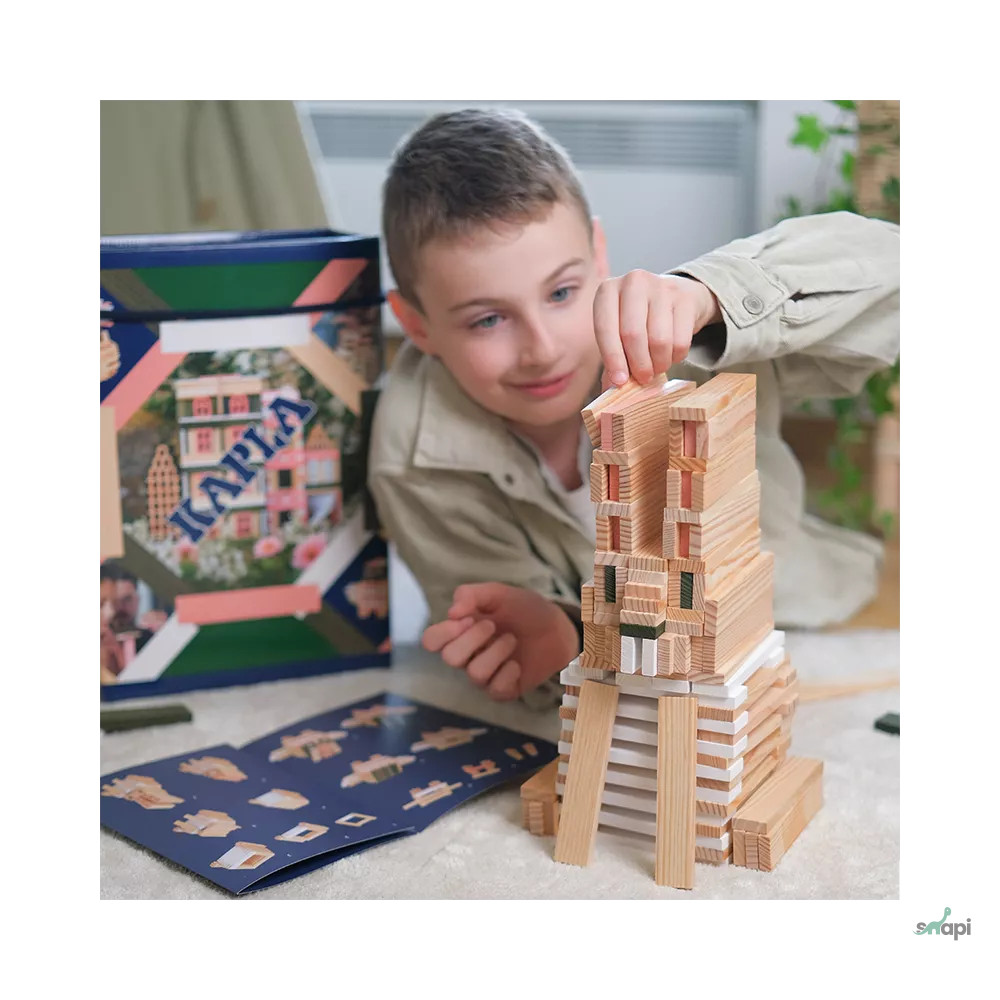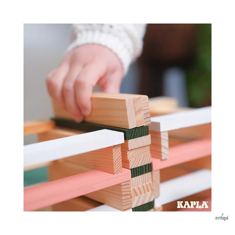 A KAPLA pallók mind azonos méretűek, így az építők végtelen lehetőségeket élvezhetnek a játékban és az alkotásban. A pallók egyszerűen összeszerelhetők ragasztó vagy kapcsok nélkül, így a képzeleted szerint építhetsz.