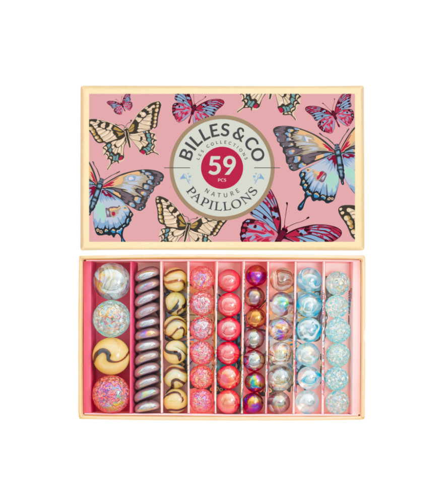 Fedezd fel újra az üveggolyók varázsát! Az üveggolyók igazi kincsekké vállnak: csodálható, játszható és gyűjthető darabok, melyek a francia Billes & CO által tematikus és színes összeállításokba, játékos és kreatív univerzumokba rendeződnek.