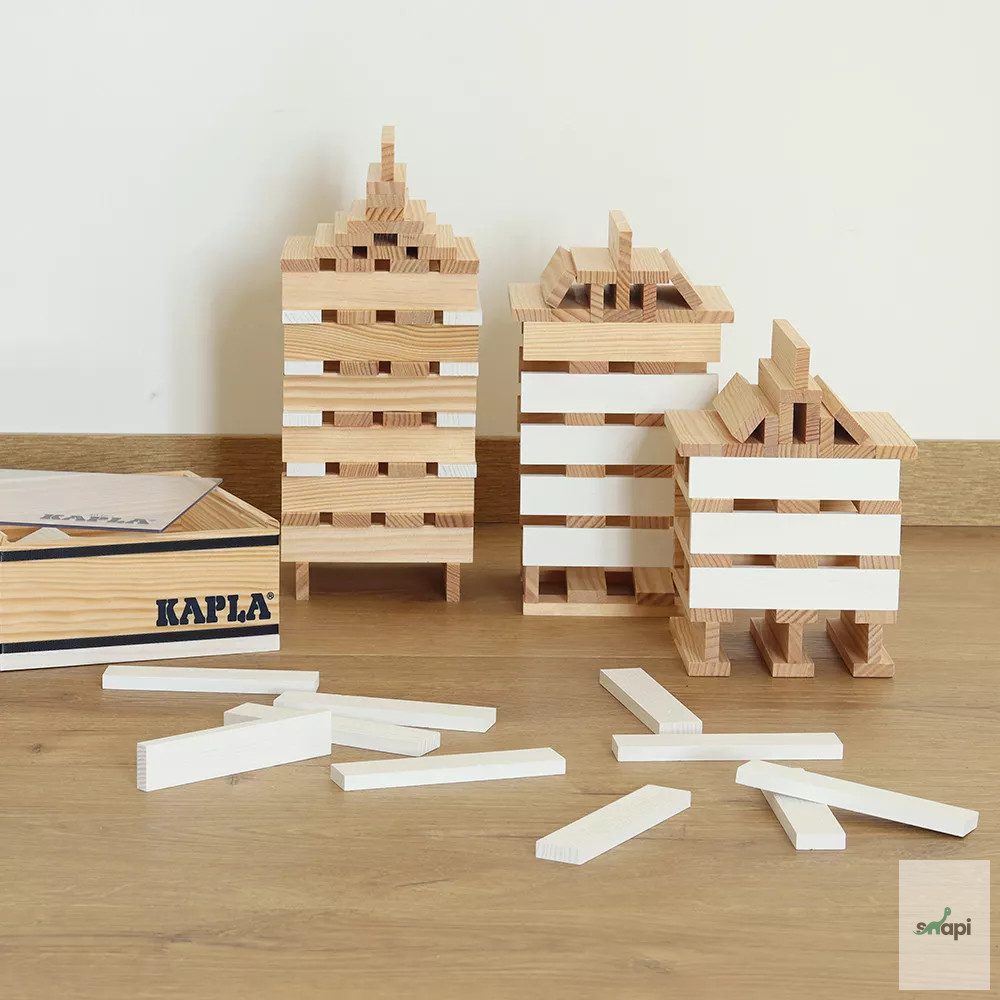 A KAPLA pallók mind azonos méretűek, így az építők végtelen lehetőségeket élvezhetnek a játékban és az alkotásban. A pallók egyszerűen összeszerelhetők ragasztó vagy kapcsok nélkül, így a képzeleted szerint építhetsz.