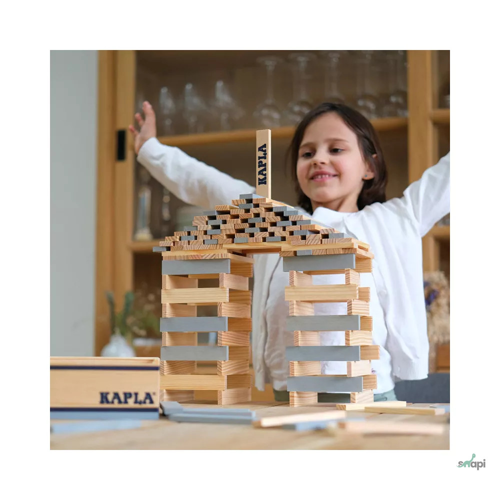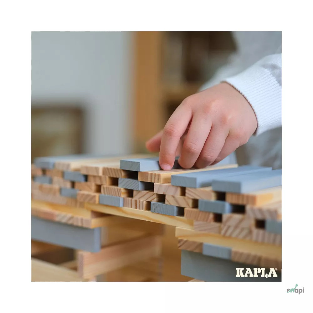 A KAPLA pallók mind azonos méretűek, így az építők végtelen lehetőségeket élvezhetnek a játékban és az alkotásban. A pallók egyszerűen összeszerelhetők ragasztó vagy kapcsok nélkül, így a képzeleted szerint építhetsz.
