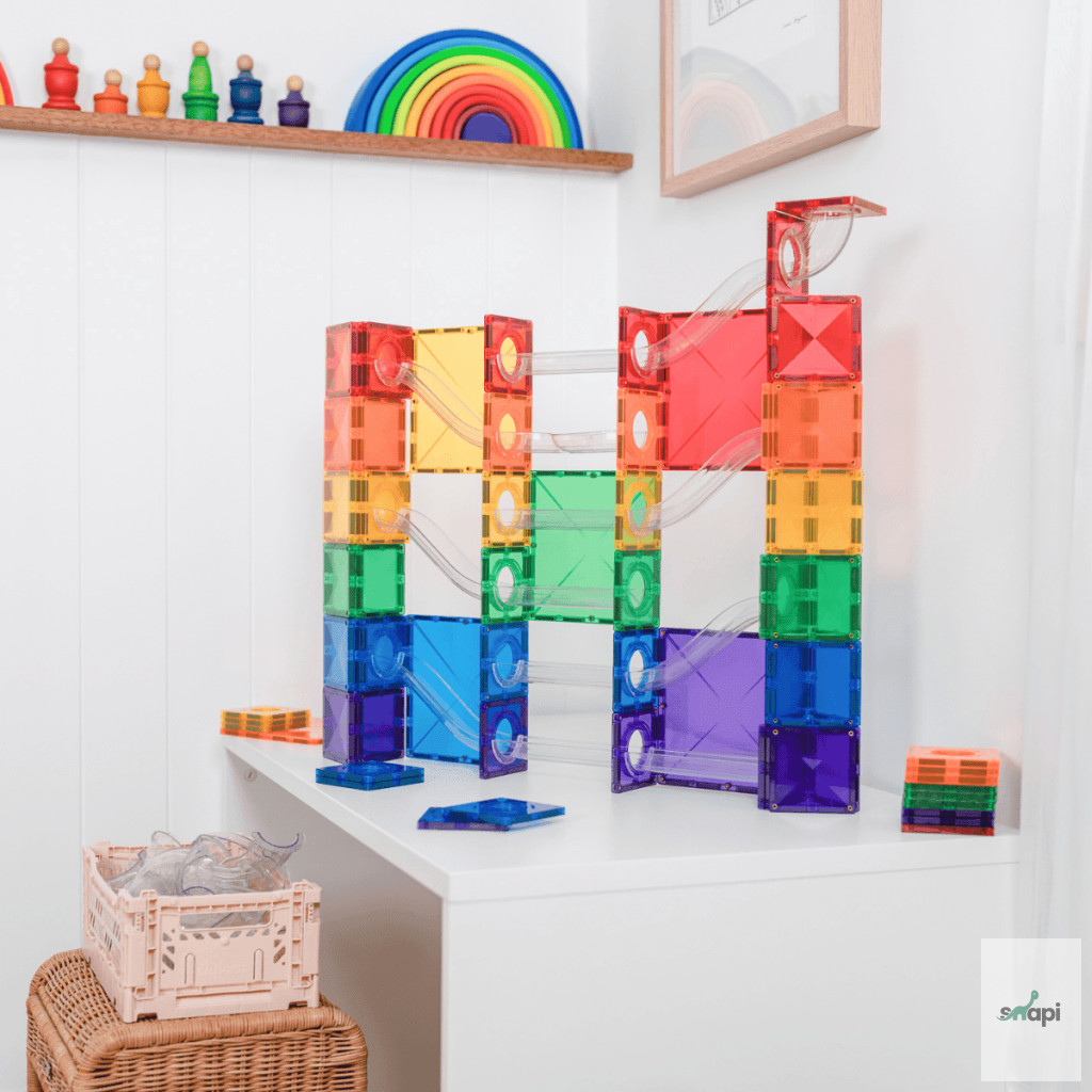 A gyerekek és a felnőttek egyaránt örömüket lelik majd a Super Ball Run szett újra és újra történő építésében, miközben egyre többféle játék- és alkotási lehetőséget fedeznek fel – legyen szó szenzoros pályákról, szortírozó csövekről, labirintusokról vagy bármi másról.