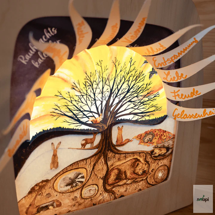 Ezért varázslatos éjszakáknak is nevezik őket , az önvizsgálat és a megtisztulás időszakának. Ahol a nap korábban állónak tűnt, december 25-től újra mozgásba kezd, minden nappal erősebben. A fény újjászületik. Bár ez eleinte alig észrevehető, ebben a naptárban tisztán látni fogod, ahogy minden nap egy plusz napsugarat nyitsz ki.