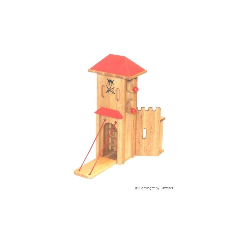Ručne navíjaný padací most a mreža dodávajú hre interaktívny prvok, ktorý deti vtiahne do nápaditej hry, keď most spúšťajú a dvíhajú a vymýšľajú dobrodružstvá a scenáre pre svoje figúrky. Dôraz na detaily a precízne spracovanie konštrukcie brány zaručujú jej odolnosť a dlhú životnosť, takže sa môže stať obľúbeným kúskom, ktorý sa odovzdáva z generácie na generáciu. Možnosti fantazijnej hry sú nekonečné, deti si môžu v tomto očarujúcom drevenom prostredí vymýšľať rôzne príbehy.