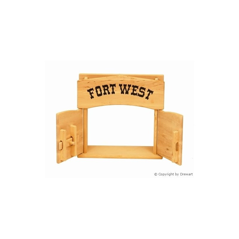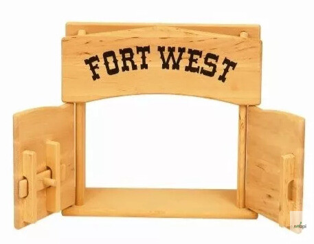 Drevená západná brána umožňuje deťom preniesť sa do sveta kovbojov a indiánov a rozvíja ich tvorivé schopnosti.
