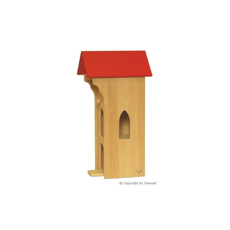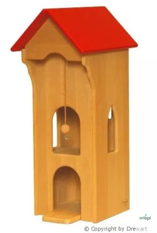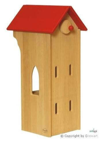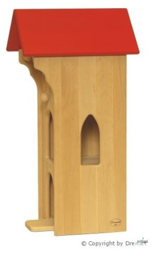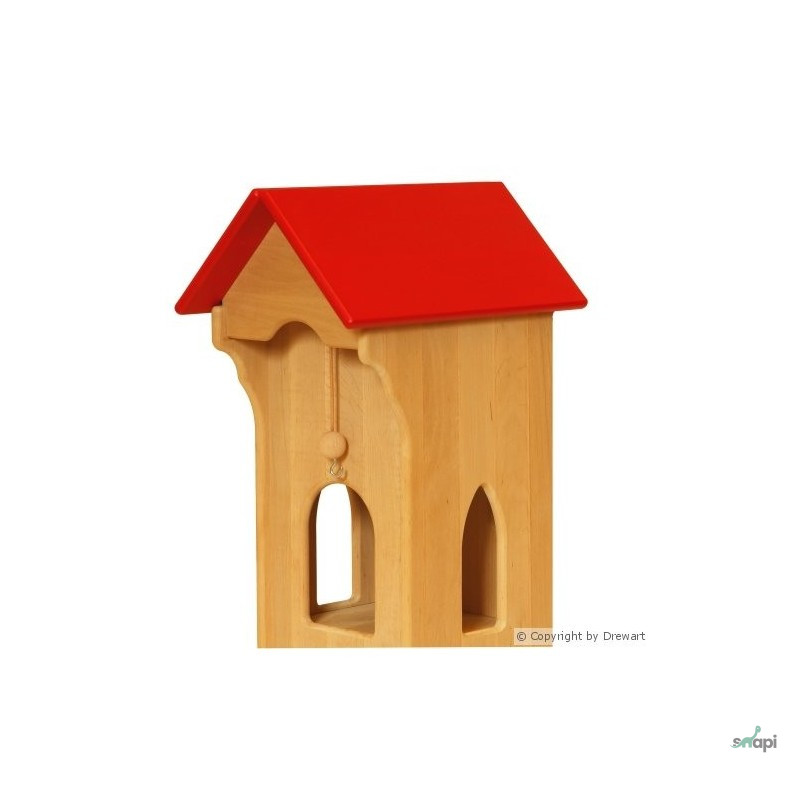 Drevený žeriav so spúšťacím hákom, červenou strechou a stredovekými oblúkovými oknami podporuje rozvoj jemnej motoriky detí. Vyrobený z kvalitných, udržateľných materiálov, je vhodný na dlhodobé používanie.
