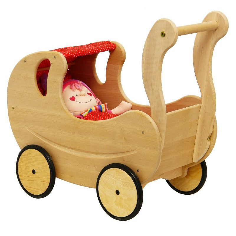 Ez a babakocsi nem csak játék, hanem mesterségbeli alkotás is. A kiváló minőségű kidolgozás és a természetes égerfa különleges hatást kölcsönöz neki. Biztos lehet benne, hogy ez a babakocsi évekig fog örömet okozni.