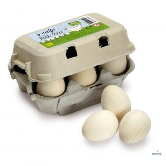 6 darab fa tojás egy szépen kialakított tojástartó dobozban