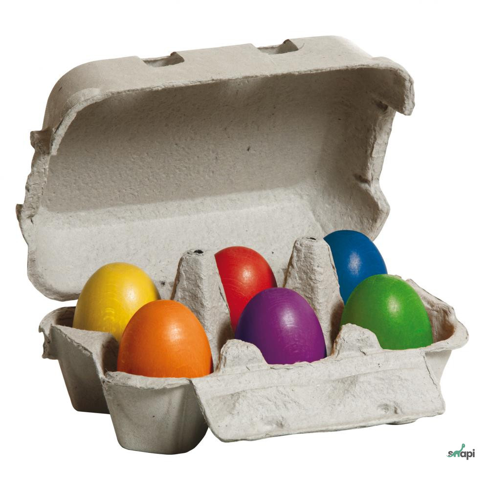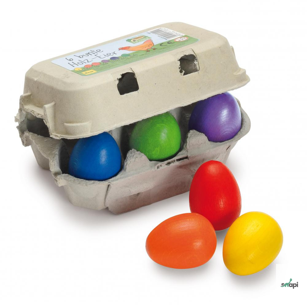6 darab fa színes tojás egy szépen kialakított tojástartó dobozban