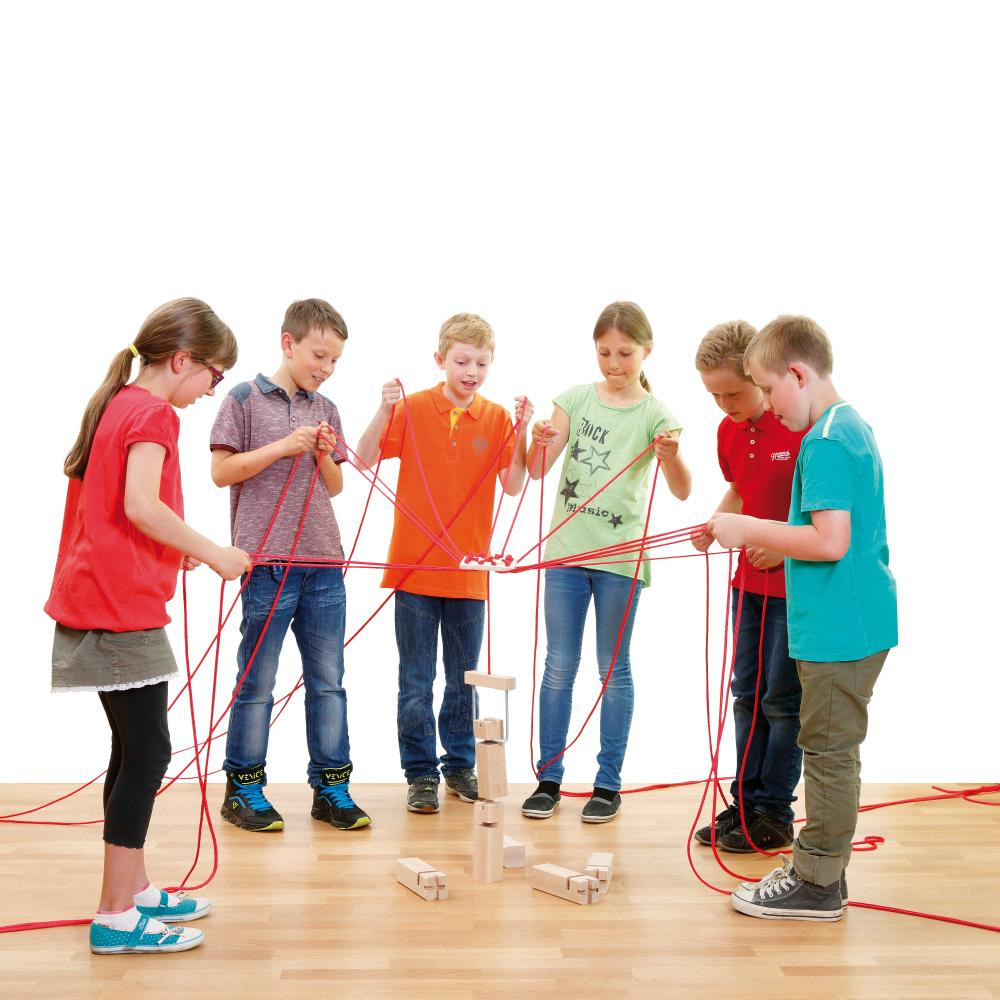 Tartalma: 6 keményfa blokk, 1 konzol kötéltartóval, 12 db 4 m-es zsinór, 1 tárolótáska, 1 játék- és összeszerelési útmutató