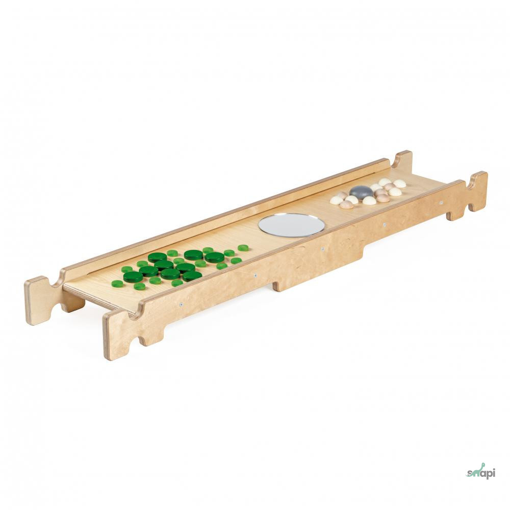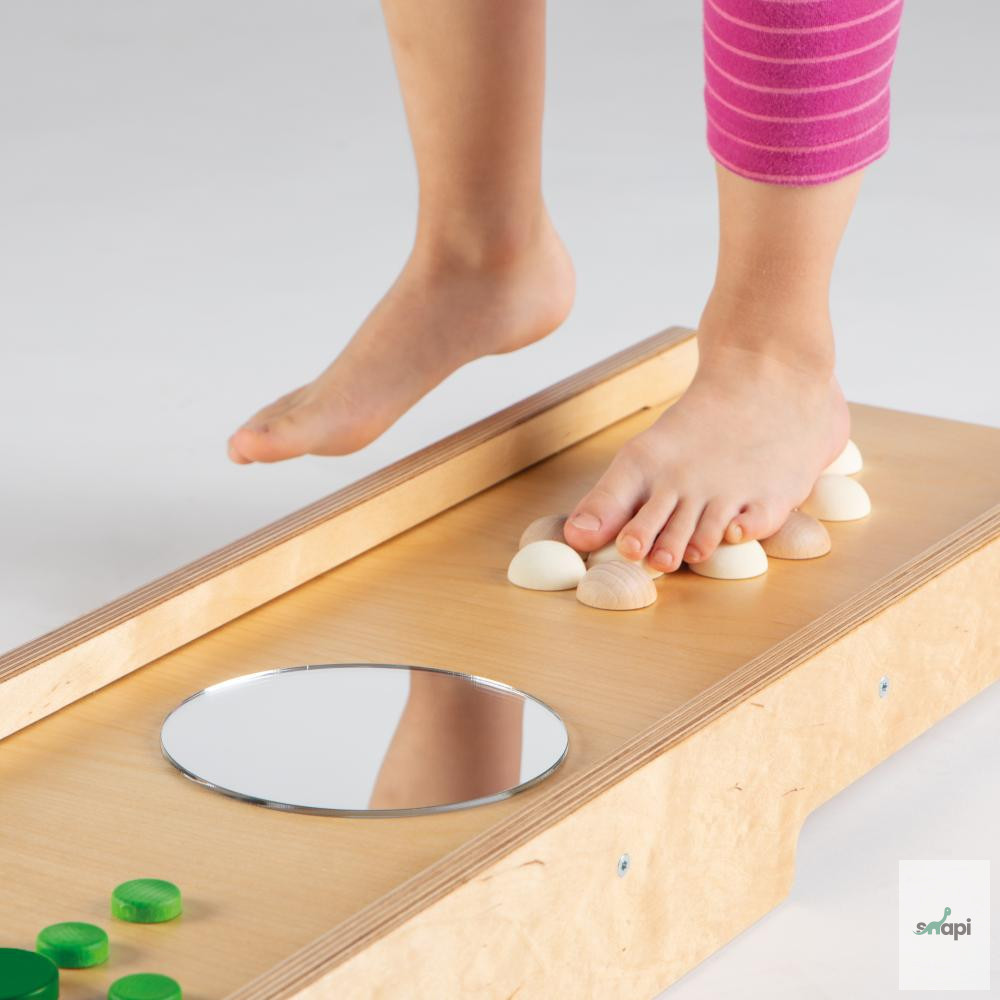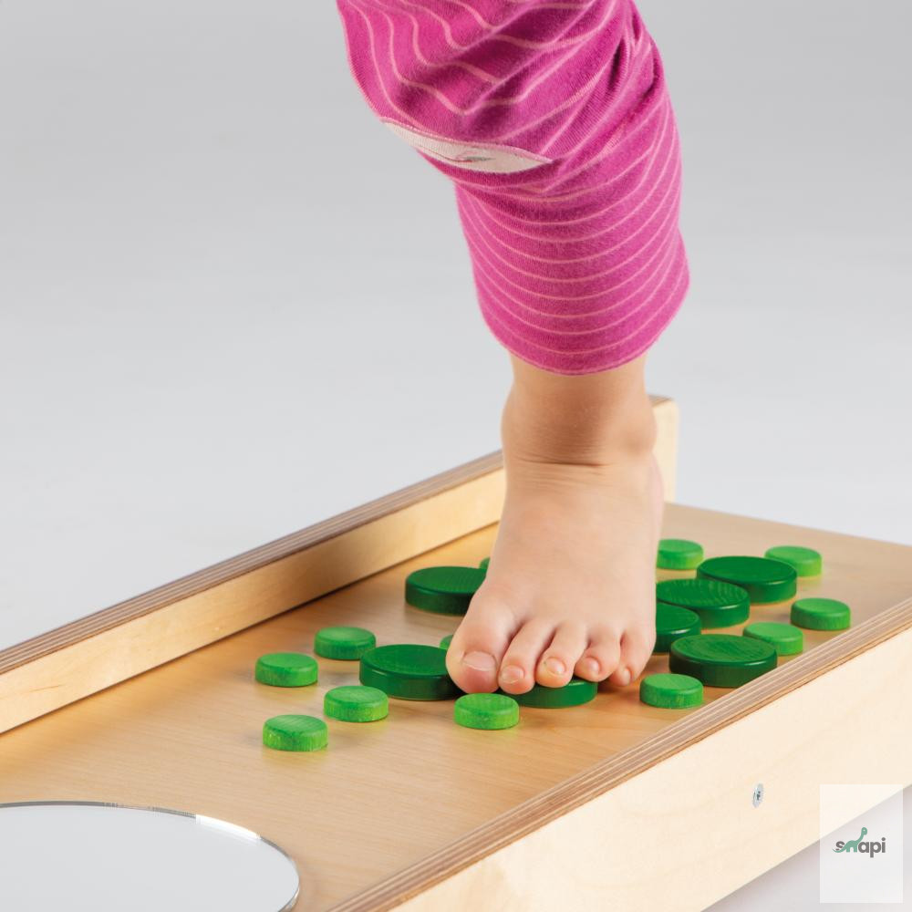 Végre egy mezítlábas ösvény, amely egy kavicsos tengerparton átsétált! Pontosan ezt az érzést kelti ez a tábla, amely sokféle anyagot tartalmaz a láb és a talp érzékenyítésére. A tábla a lábak érzékelőrendszerének megerősítésére szolgál. Az Erzi termékcsalád rövidebb kiegyensúlyozó lapjai ideálisak a kisebb helyiségekben való használatra is.