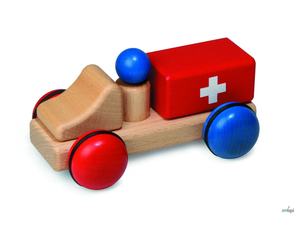 Fa mentőautó figurával- 15 cm