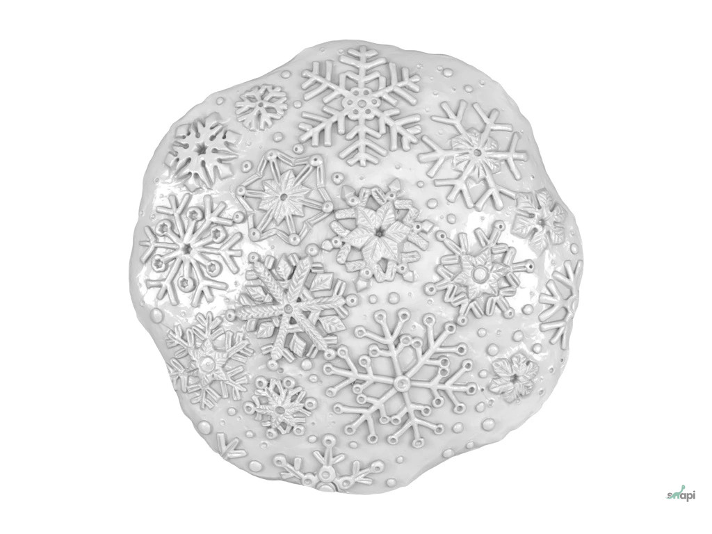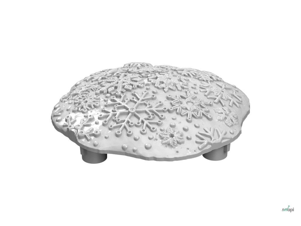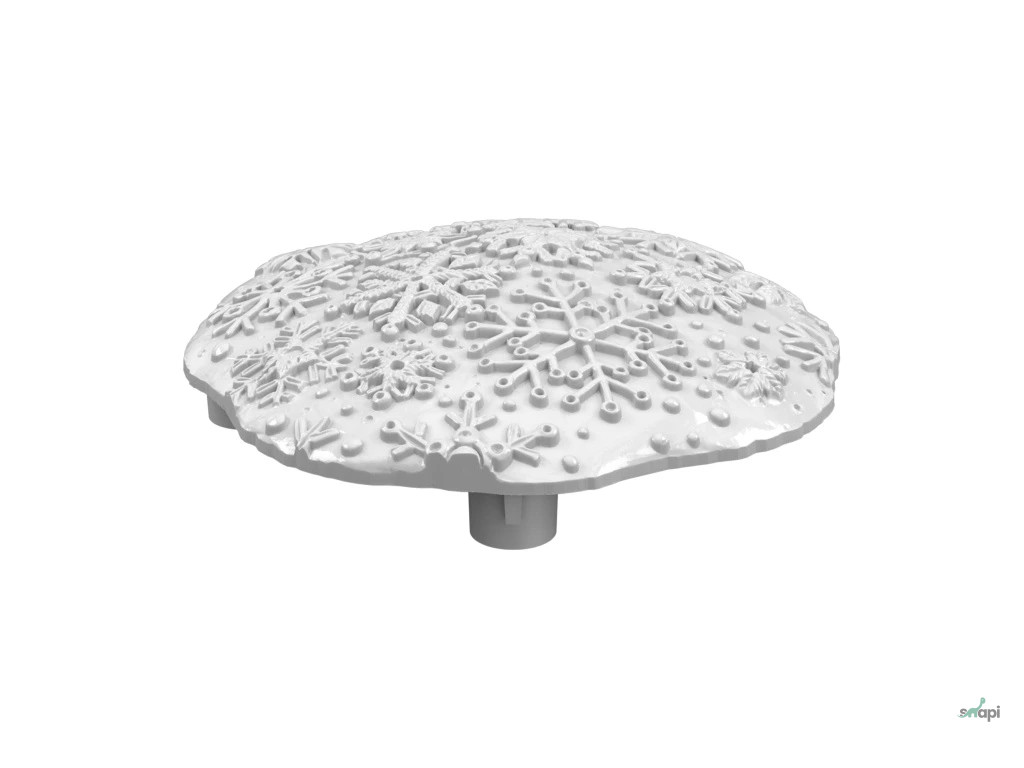 A hópehely úgy lett kialakítva, hogy egy hótakaróra hasonlítson, amely kényelmesen megül a tuskó felületén .